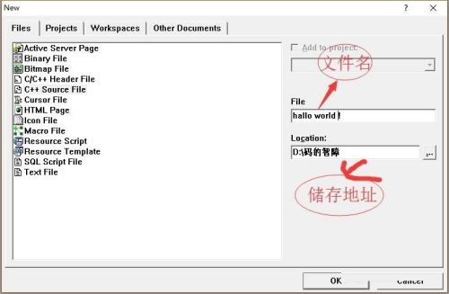 第三步:找到窗口中的文件选项,选择C++ source file,选择储存地址,确定文件名(如图所示)。