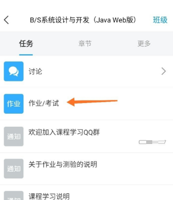 第三步:然后点击打开页面上的“作业、考试”(如图所示)。