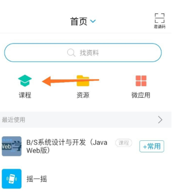 第一步:点击打开学习通app,然后点击首页上的“课程”选项(如图所示)。