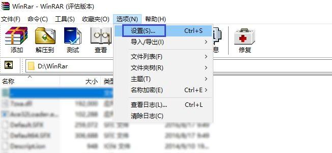 首先,在电脑中打开WinRAR压缩软件,点击“选项”菜单下的“设置”。