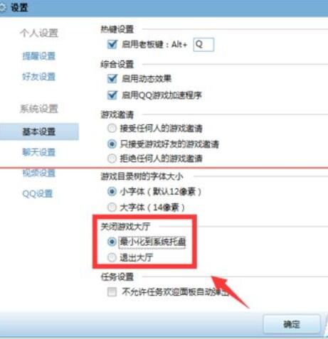 在“基本设置”面板将关闭游戏大厅设置有“退出大厅”更改为“最小化系统托盘”