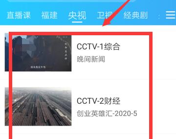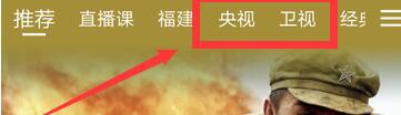 在电视家首页,点击上方菜单栏“央视”或“卫视”。