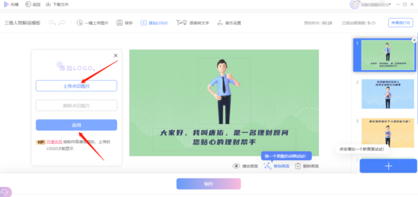 同样是进入动画制作界面,点击上方添加LOGO的选项,
