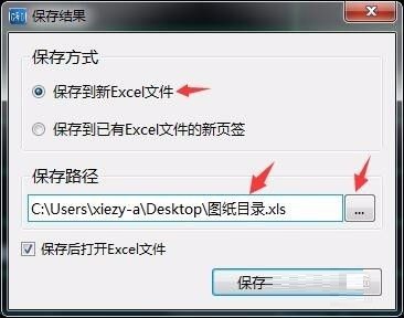 第三步:接着我们框选后自动弹出对话框,可以设置提取后exce的名字,保存位置等。第一次提取请选择“保存到新excel文件”,点击保存(如图所示)。