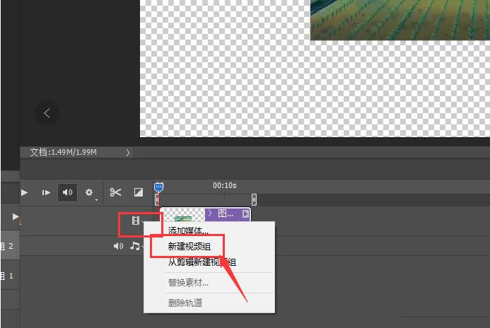 在时间轴栏中,打开扩展栏,选择如图新建视频组选项