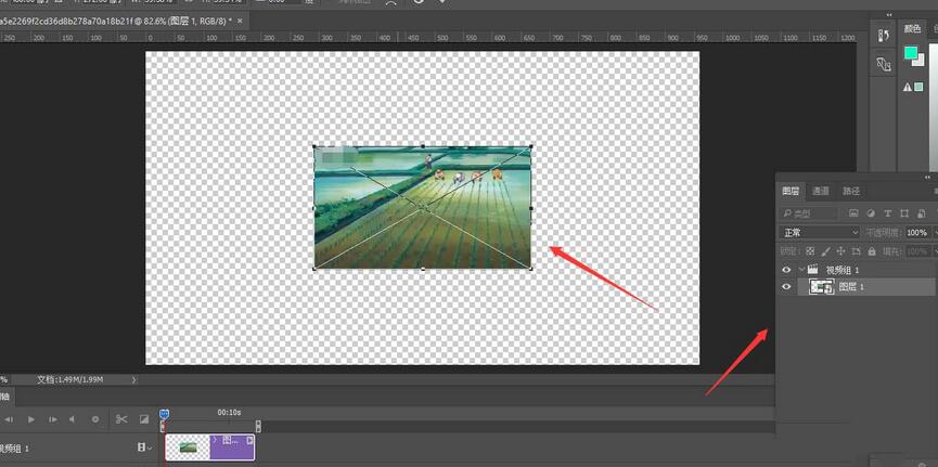选中图层栏中的视频图层,将其变换,然后就能调整大小以及位置了