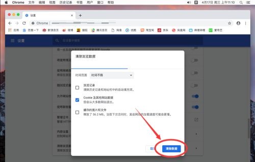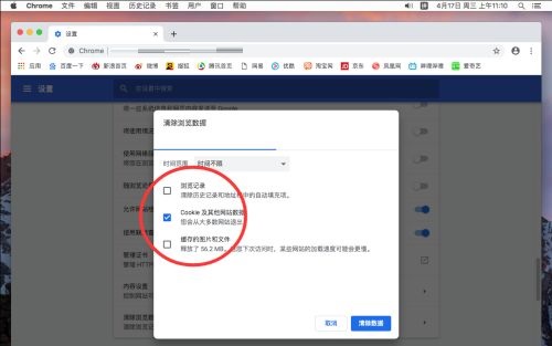 第十一步:点击右下角的“清除数据”,这样浏览器保存的Cookie和登录信息就被清除了(如图所示)。
