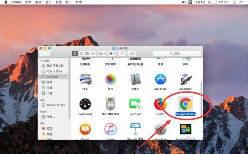 第三步:打开应用程序后,找到“Google Chrome”双击打开(如图所示)。