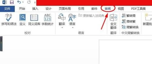 第一步:打开word 2013文档,选择顶部菜单审阅选项。