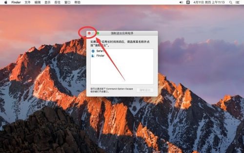 第六步:点击左上角的红色叉号关闭强制退出,返回桌面(如图所示)。