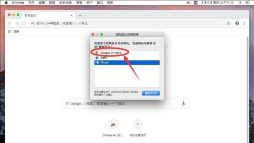第三步:打开强制退出后,选择“Google Chrome”