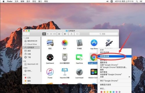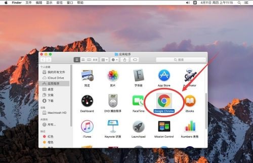 第九步:打开应用程序后,选择“Google Chrome”然后点右键(如图所示)。
