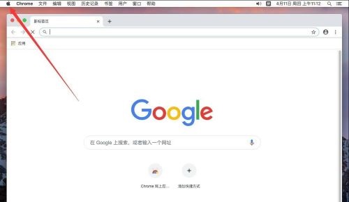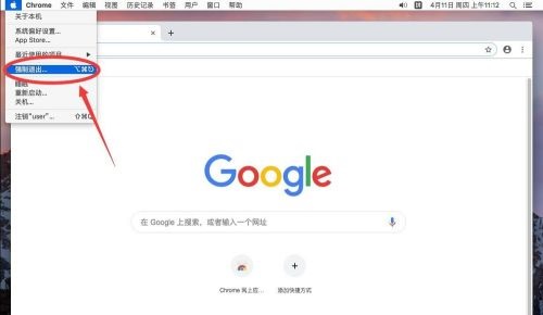 第一步:首先卸载之前要先确认谷歌浏览器已经完全退出,点击屏幕左上角的苹果标志(如图所示)。