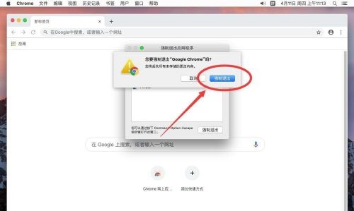 第五步:弹出提示,还是选择“强制退出”,这样谷歌浏览器就完全退出了(如图所示)。