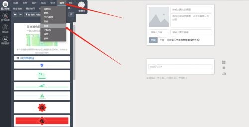 第三步:在编辑页面我们找到“组件”,选择视频(如图所示)。