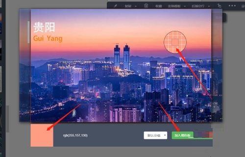 第四步:拖动取色器,放到自己喜欢的颜色上面点击一下;然后点击加入调色板即可(如图所示)。