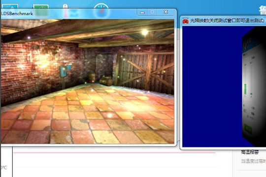 4、之后将会弹出窗口进行测试,耐心等待即可,在测试同时,窗口左上角还将显示出当前画面的帧数信息,可以大致显示电脑显卡的性能究竟是如何的,如图所示: