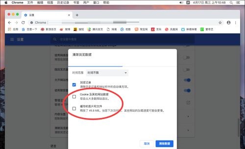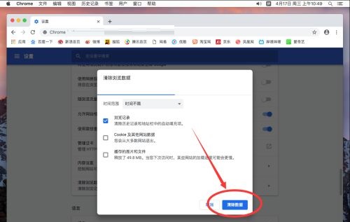 第八步:设定好要删除的时间后,下面有3个选项,分别是“浏览记录”、“Cookie及其他网站数据”和“缓存的图片和文件夹”,只删除“浏览记录”,则取消其他两个勾选(如图所示)。