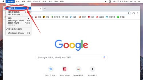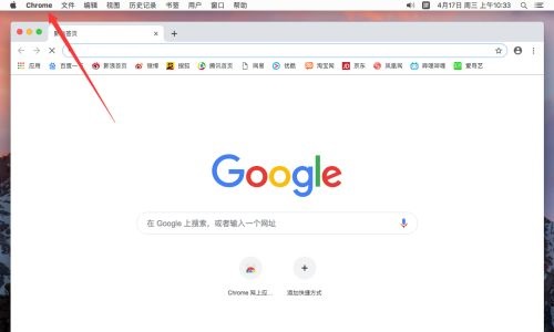第二步:打开谷歌浏览器后,点击屏幕左上角苹果标志右侧的“Chrome”(如图所示)。