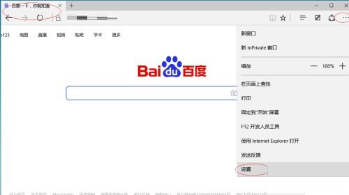 第二步:唤出浏览器程序窗口,选择"更多操作|设置"项(如图所示)。