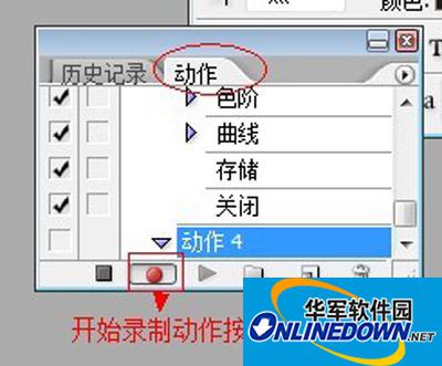 2、在对图片进行调整之前,我们要先准备录制接下来的动作。在动作面板中添加一个新的动作。然后点击开始录制按钮。