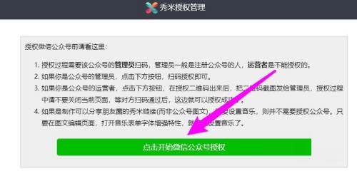 第三步:进入授权管理页面中,点击开始微信公众号授权(如图所示)。