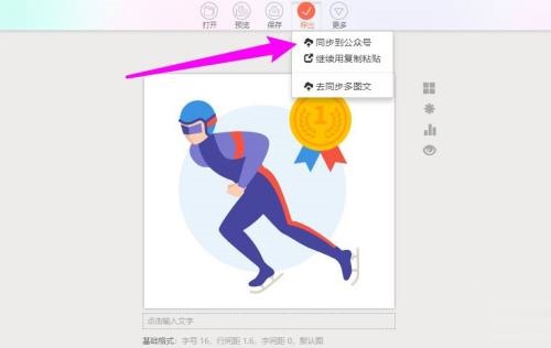 第六步:在下拉选项中直接点击同步到公众号即可(如图所示)。