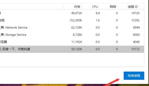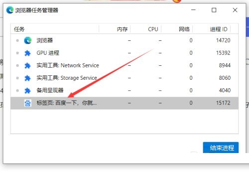 第六步:找到我们卡死的标签,然后点击结束进程即可(如图所示)。