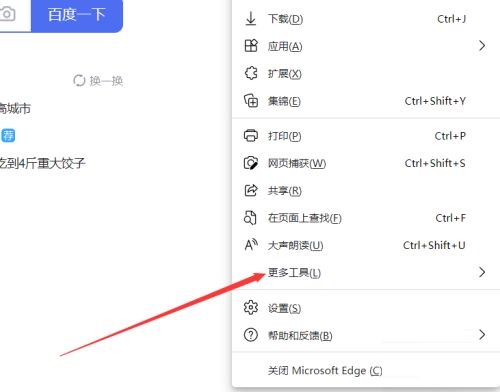 第三步:点击之后,我们就会弹出一个子菜单,这里有一个更多工具,我们将鼠标放在这个上面(如图所示)。