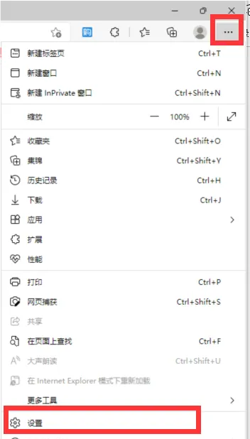 首先打开Microsoft Edge浏览器,点击右上角的三个点,再进入“设置”选项