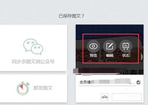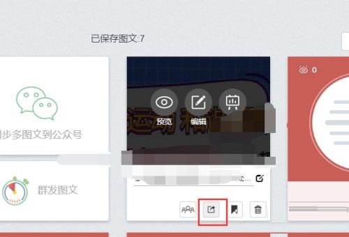 第二步:跳转的界面显示已保存的图文,鼠标移动到某一个图文上,显示如图所示的按钮。
