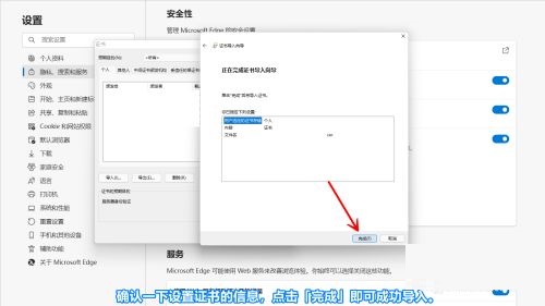 第五步:确认一下设置证书的信息,点击「完成」即可成功导入(如图所示)。
