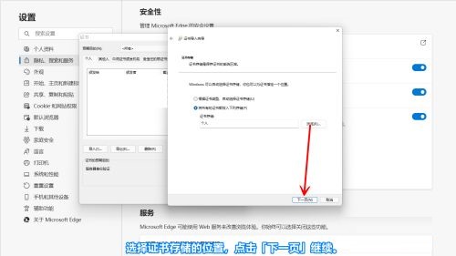 第四步:选择证书存储的位置,点击「下一页」继续(如图所示)。