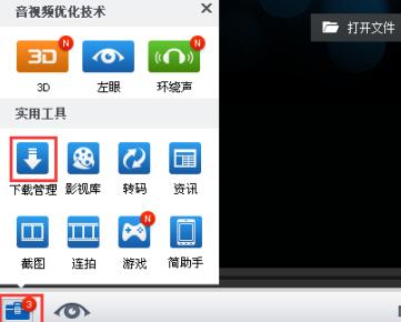 下载的影片在哪里找呢!下载过程中,如果我们要查看下载管理,可以点击播放器主界面的右下角菜单,然后再点击【进入下载管理】。
