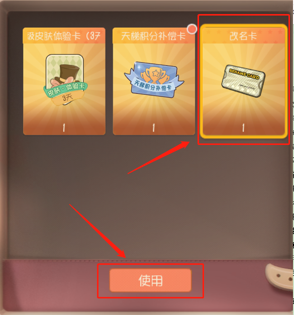 页面跳转后,单击选中购买的“改名卡”,并点击下方的“使用”键,就能重新输入游戏名字了。