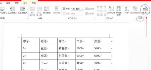 第一步:打开word需要处理的表格,点击菜单栏布局,选择数据,转换成文本。