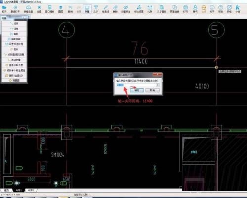 第四步:然后我们在弹出对话框内,填入实际距离(图纸上标注的),点击确定(如图所示)。