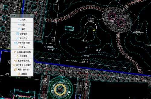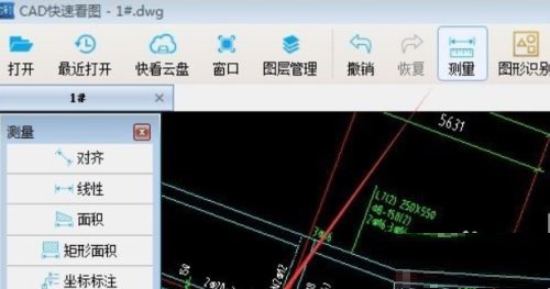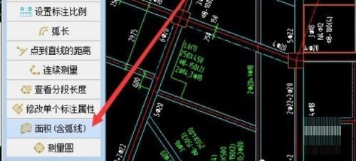 第二步:打开图纸后,点击“测量”,选择“面积含弧线”(如图所示)。