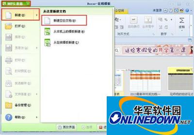 首先打开wps表格,点击左上角上的“wps表格”按钮,在下拉菜单中选择“新建”下的“新建空白文档”如下图所示: