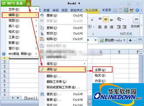 首先选中要删除内容格式的单元格,点击左上角的▽按钮,在下拉菜单中选择“编辑”——“清除”——“全部”,这样就可以将单元格中的所有内容及格式设置清除。