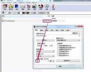 第四步:需要压缩的文件容量是50997352字节,转换后是48.6MB。如果手边有2个32MB的空优盘,这时,就可以把分卷(分段)大小设置为25MB。
