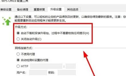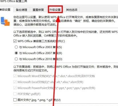 5. 打开WPS Office配置工具窗口后,点击“升级设置”。