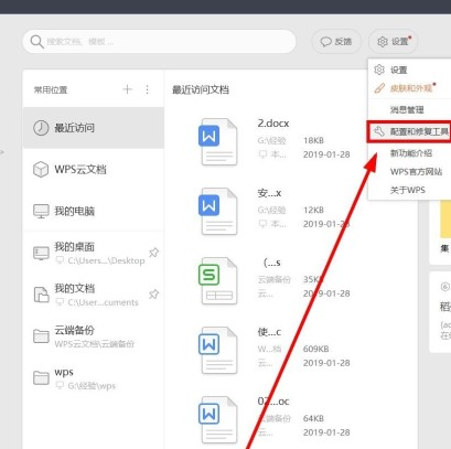 3. 在弹出选项里点击“配置和修复工具”。