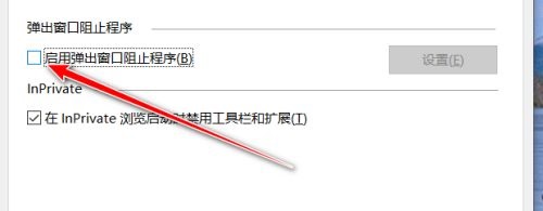 第五步:去掉勾选启用弹出窗口阻止程序(如图所示)。