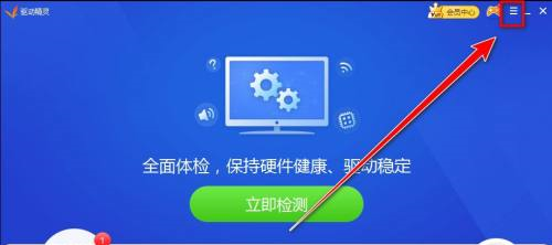 第一步:在驱动精灵中,点击右上角的“菜单”图标。
