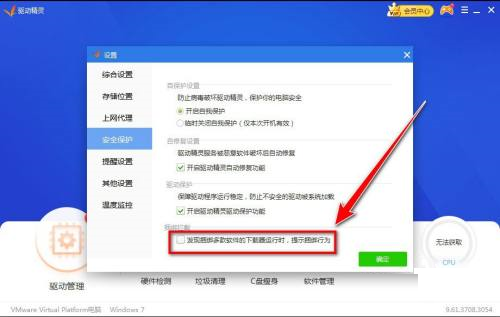 第四步:在安全保护设置页中,勾选“发现捆绑多款软件的下载器运行时,提示捆绑行为”。