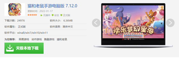 在浏览器上搜索猫和老鼠手游官网,进入官网后,在首页中间选择“桌面模拟器下载”按钮。下载安装好网易MuMu模拟器后,软件会自动下载安装猫和老鼠手游电脑版,最后直接打开使用就行。