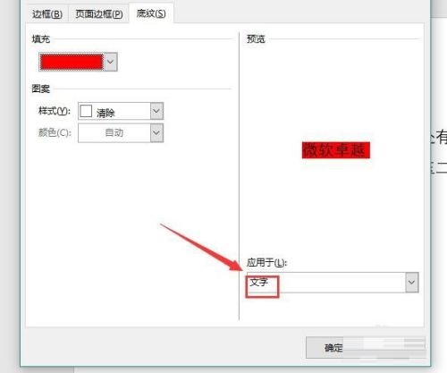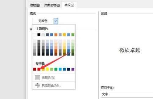 第三步:之后,在弹出的对话框中选择“底纹”标签,在颜色选取选取红色(如图所示)。