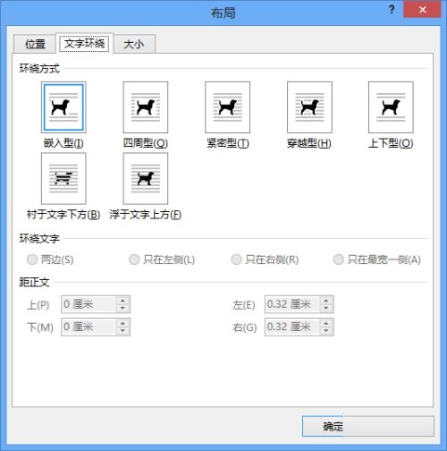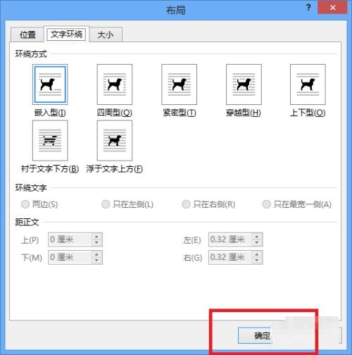 第四步:单击“布局”对话框中的“文字环绕”选项卡,可自定义环绕方式(如图所示)。