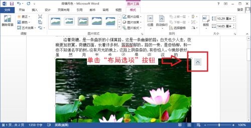 第一步:插入的图片默认处于选中状态,可以单击图片右上角的“布局选项”按钮设置文字环绕(如图所示)。